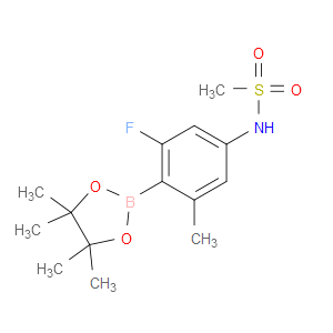| 英文名 | N-(3-fluoro-5-methyl-4-(4,4,5,5-tetramethyl-1,3,2-dioxaborolan-2-yl)phenyl)methanesulfonamide | ||